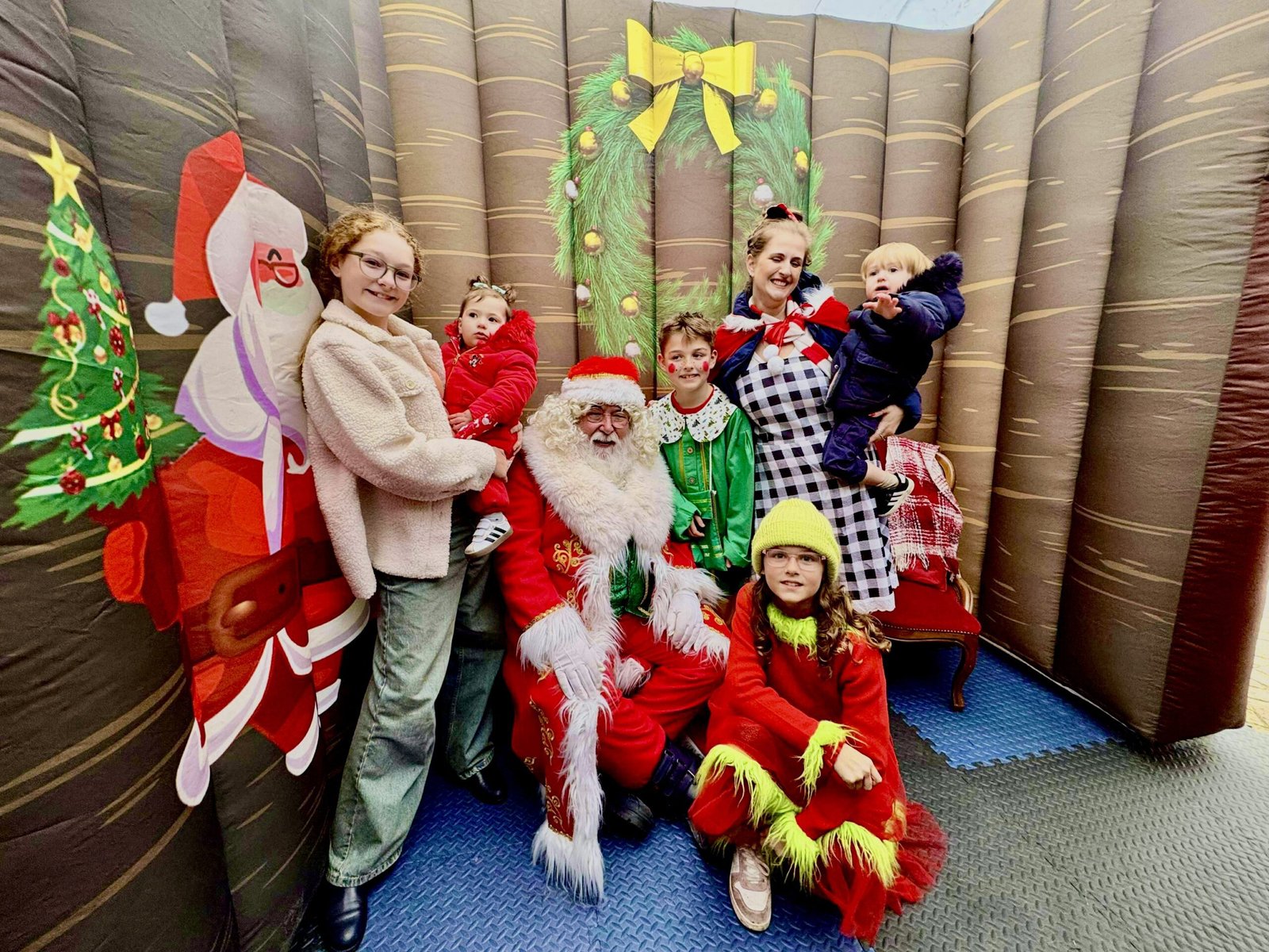 Families and entertainers enjoy a visit to Santa’s grotto at Swineshead Christmas Market